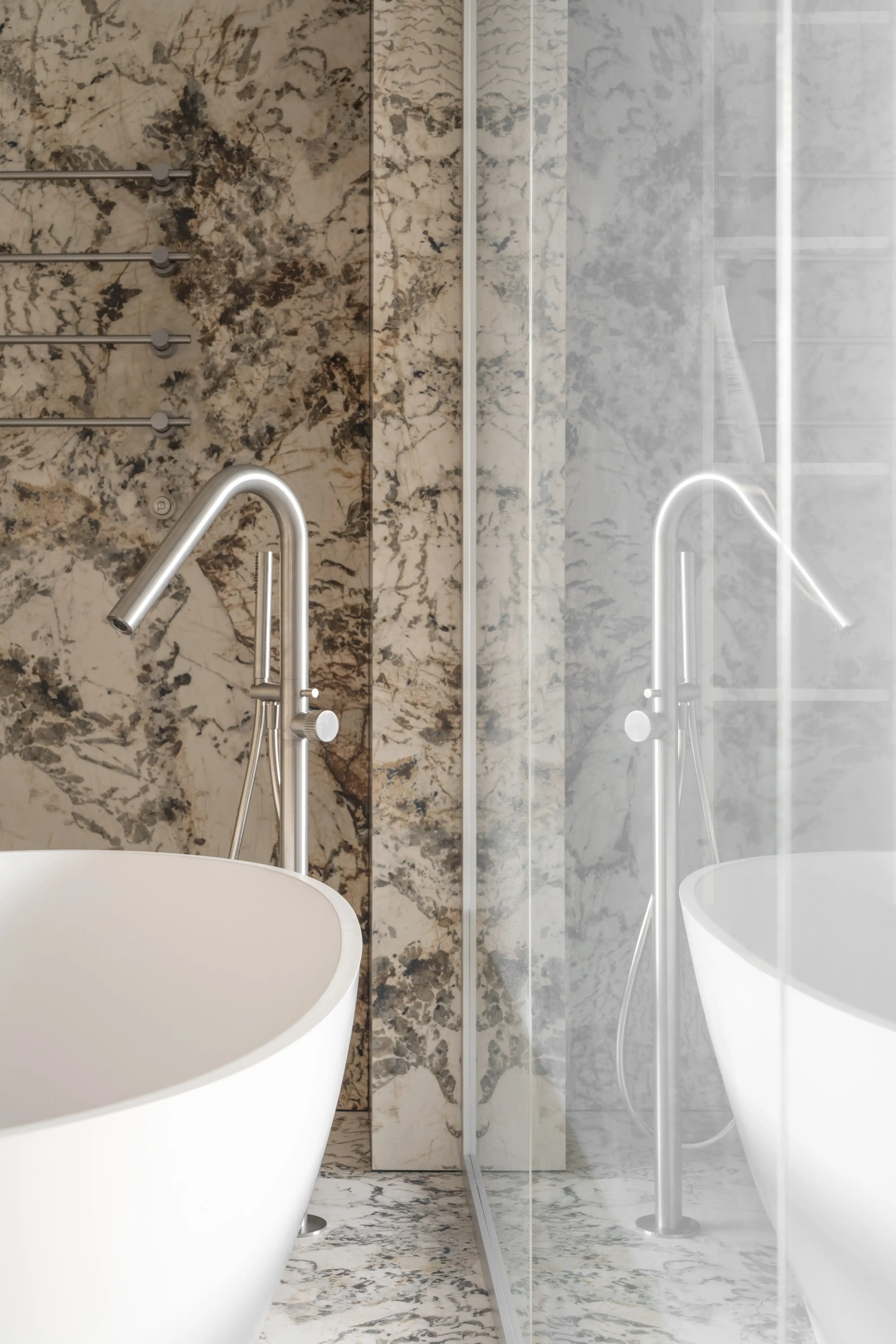 - Опалення: Інтегровано в підлогу внутрішньопідлоговий конвектор Katherm QK nano та встановлено дизайнерський радіатор Kermi Plan. Змонтовано систему електричної теплої підлоги з програмованими терморегуляторами.
