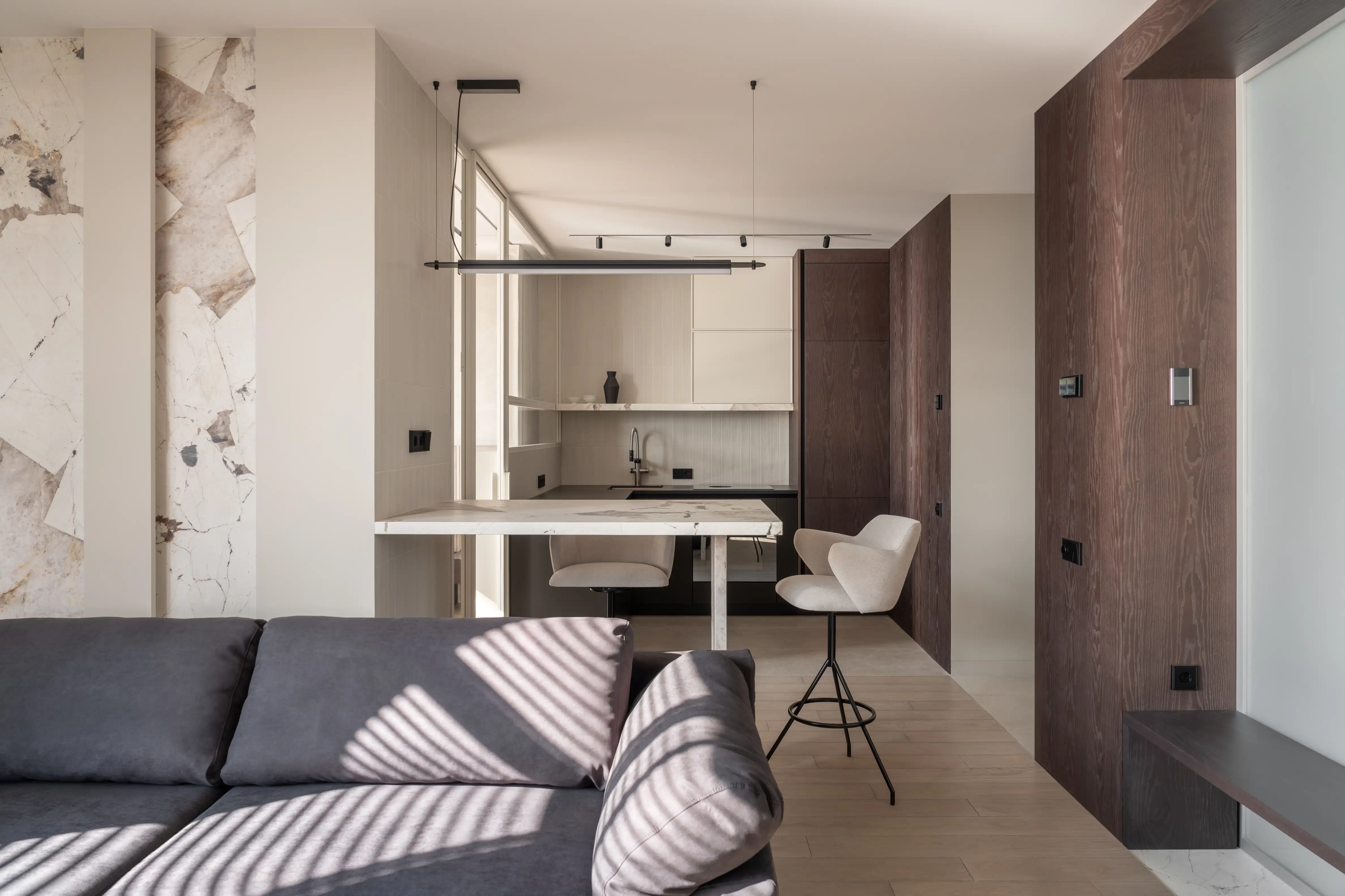 Реалізація комплексного дизайн-проекту, де мінімалістична естетика вимагала прецизійного інжинірингу та будівельного виконання з нульовими допусками.Наш авторський та технічний нагляд забезпечив повну відповідність проекту, що включало розробку робочої документації ОВіК та ВК, інтеграцію прихованих комунікацій та монтаж вузлів прихованого монтажу.
