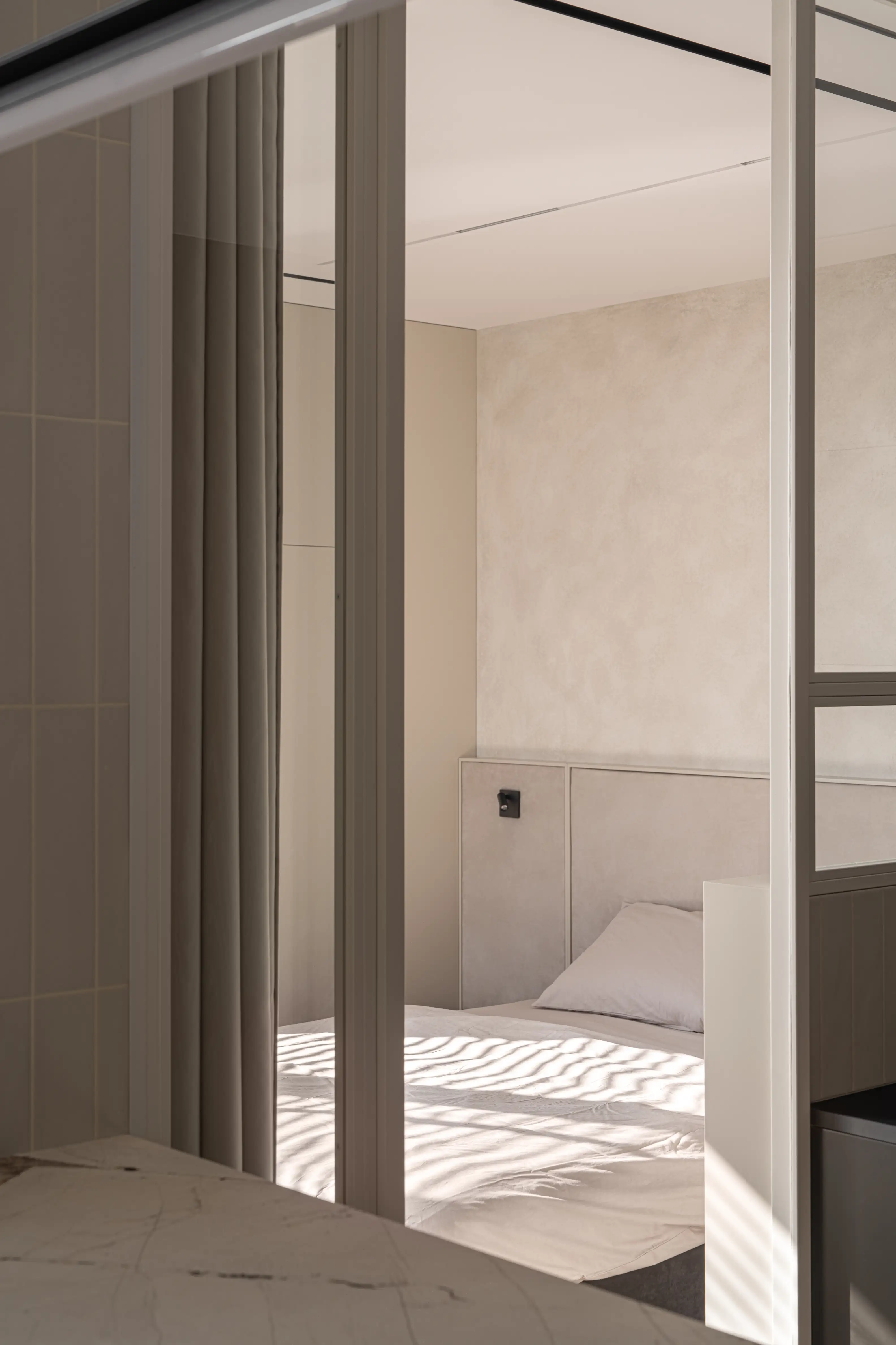 - Функціональне зонування: Розроблено планувальне рішення “open space” з інтеграцією спальні та ванної кімнати.