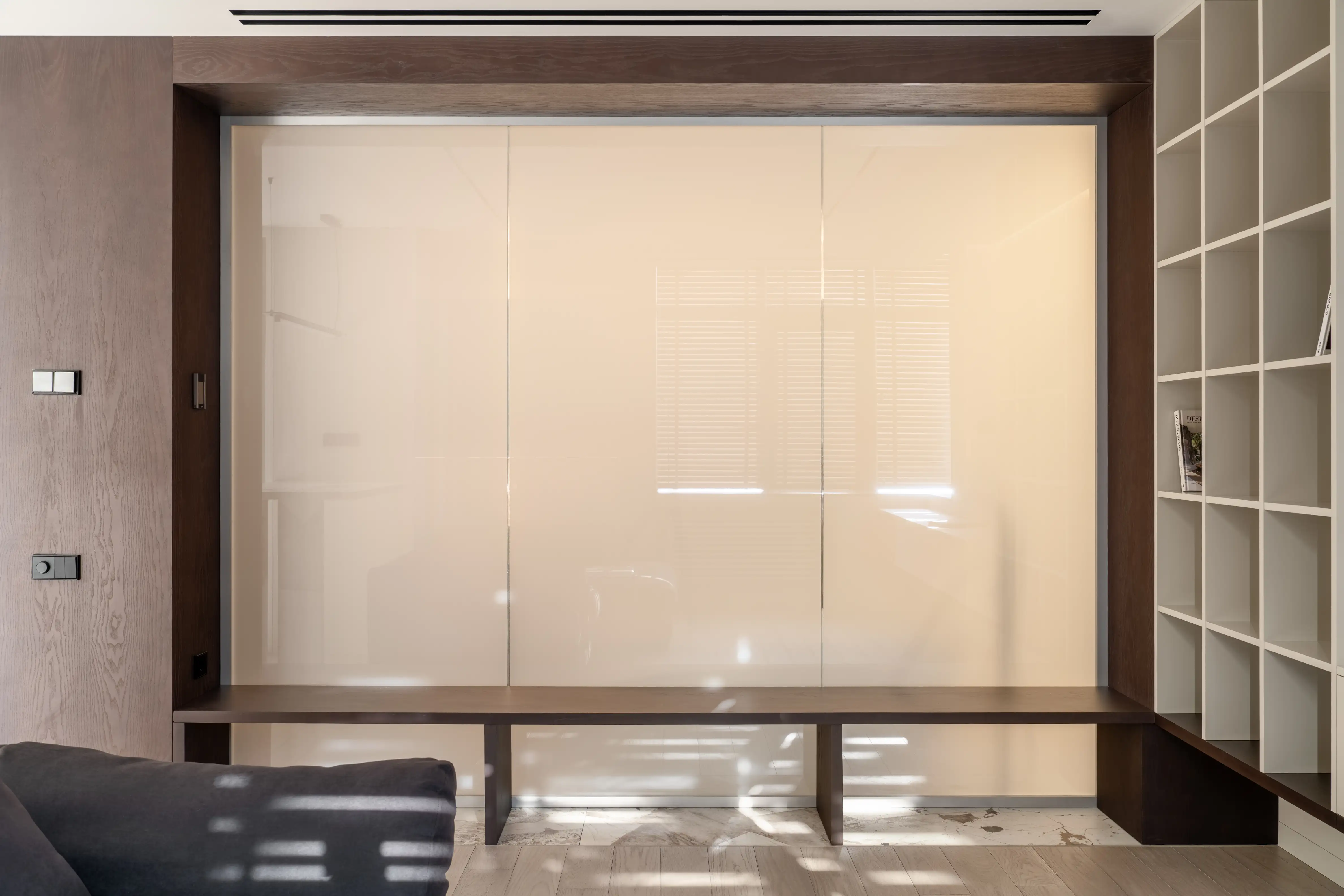 - Двері та освітлення: Змонтували двері прихованого монтажу та комплексну систему освітлення, що включає магнітні трекові системи та тіньові профілі з LED-підсвіткою.