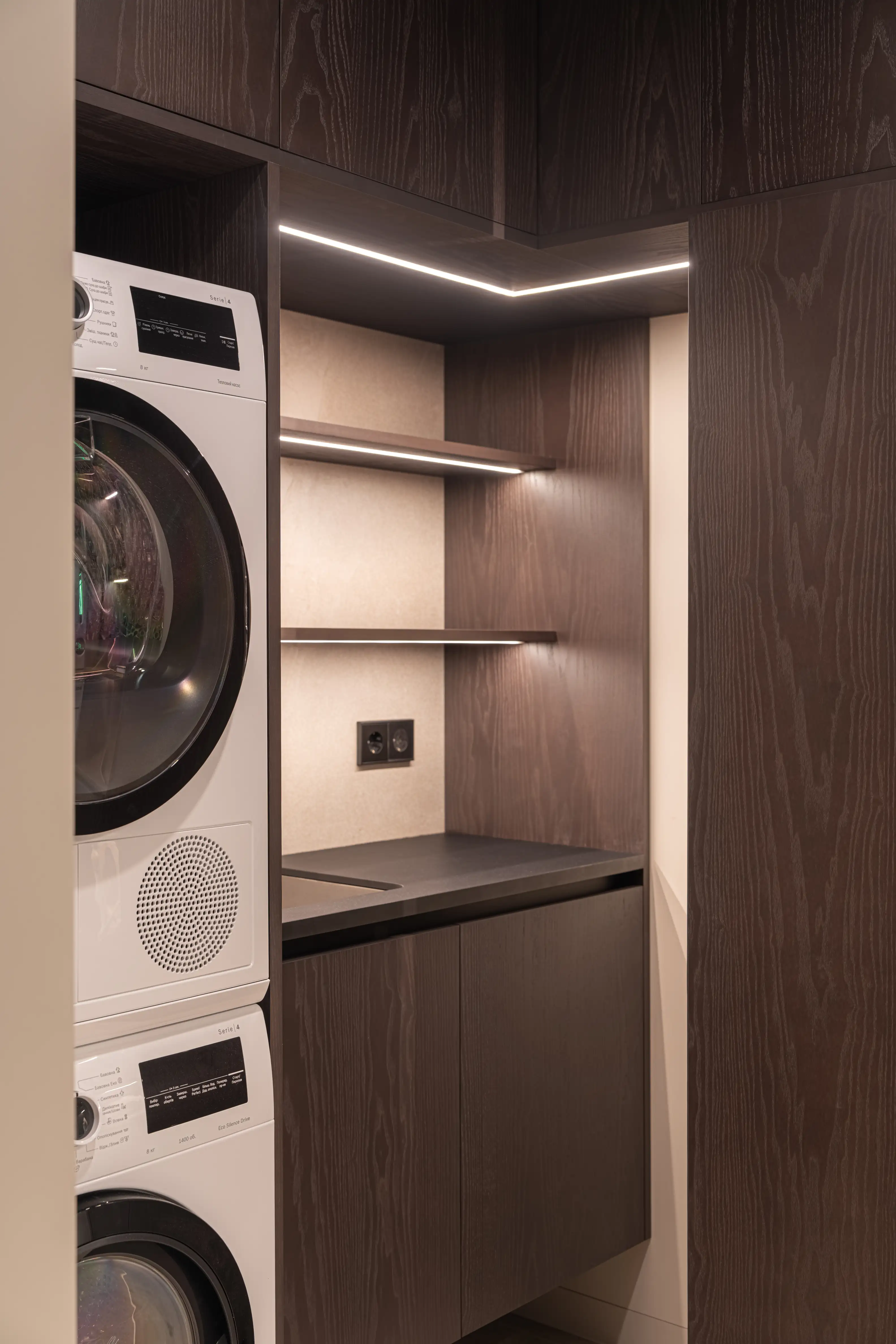 - Монтаж корпусних меблів: Встановлено всі меблі, виготовлені за індивідуальними кресленнями, включаючи кухонний гарнітур та системи зберігання.