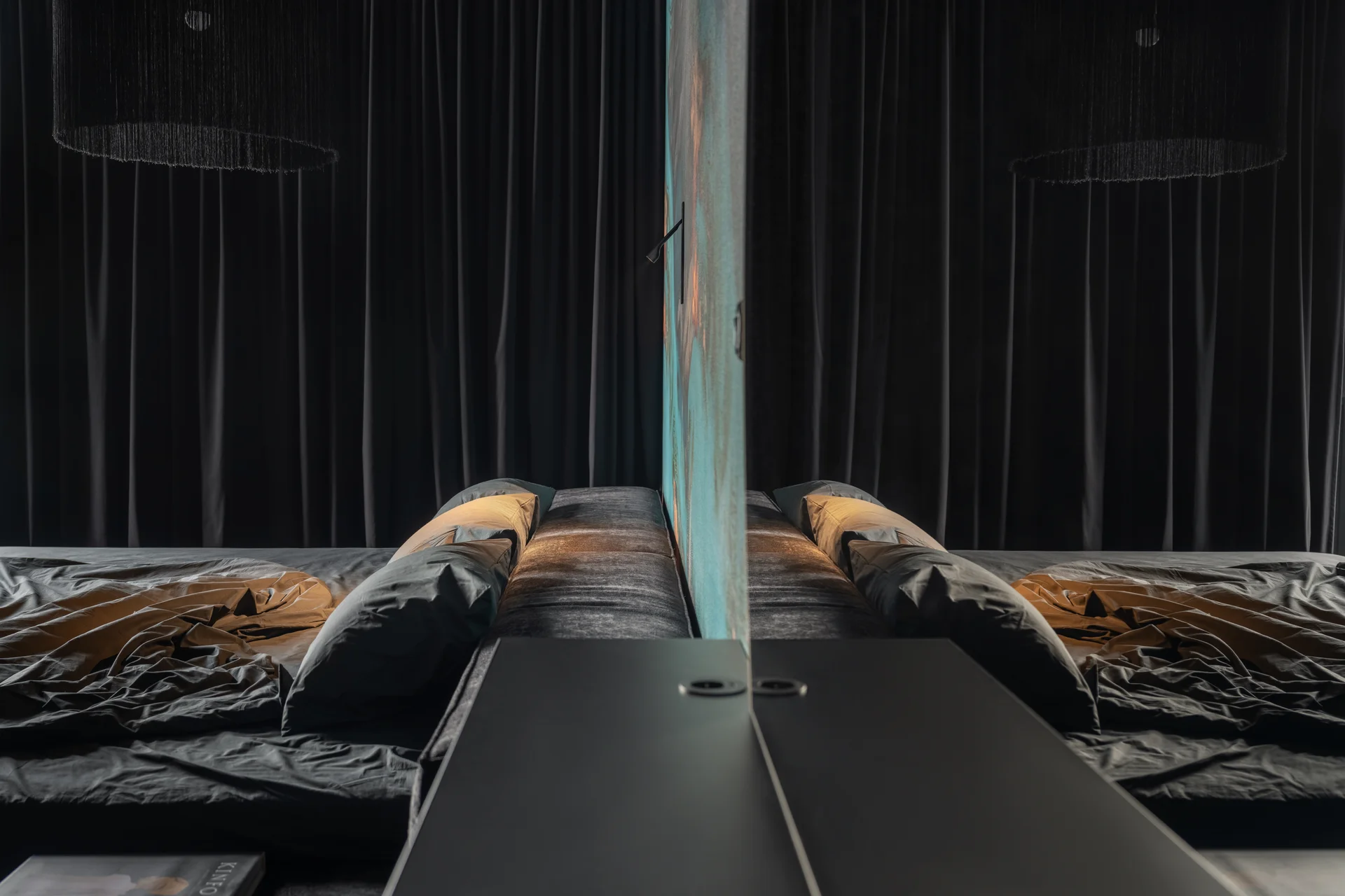 - Комплектація об’єкта меблями: Розміщено всі окремо стоячі предмети меблів, які були частиною початкової концепції, зокрема кутовий диван Svay від Interia, стіл Plissé Table та ліжко Pavarotti.